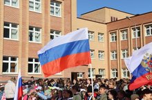 Сегодня в нашей гимназии прошла торжественная линейка с поднятием государственных флагов, а также классные часы на тему: "Наша страна - Россия!"