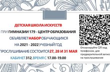 Детская школа искусств объявляет набор обучающихся на 2021-2022 учебный год. Прослушивание состоится 27,28 и 31 мая, кабинет 312, время с 17.00 до 19.00.
