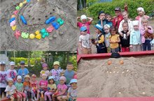 В нашем детском саду, в группах прошел «День песка». Все малыши приняли активное участие, ведь они очень любят такие игры с песком. Его можно пересыпать из ладошки в ладошку, из совка в формочку. В песок можно прятать мелкие игрушки, строить постройки, а потом разрушать их и снова строить.
