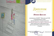 ДИПЛОМОМ награждается Вдовин Ярослав призер районного конкурса рисунков "Безопасный переход по дороге в детский сад" среди дошкольных образовательных организаций Ново-Савиновского района г.Казани.