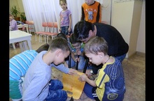 Дедушка Файзиева Дамира из группы № 9 организовал небольшой трудовой десант. Вместе с мальчиками он отремонтировал стулья и столы в группе. Дети с удовольствием включились в работу. Даже девочки с интересом наблюдали за происходящим.