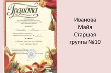 Отдел образования Управления образования Исполнительного комитета города Казани по Авиастроительному и Ново - Савиновскому районам поздравляет воспитанницу старшей группы №10 Иванову Майю, которой 5 апреля вручили грамоту за участие в районном этапе городского конкурса чтецов "Звёздный билет"! Желаем Майе в дальнейшем совершенствовать свое мастерство!