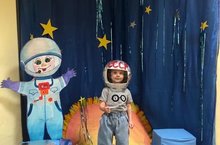 В фойе детского сада распожена фотозона, где можно не только сфотографироваться, но и примерить шлем космонавта!!!