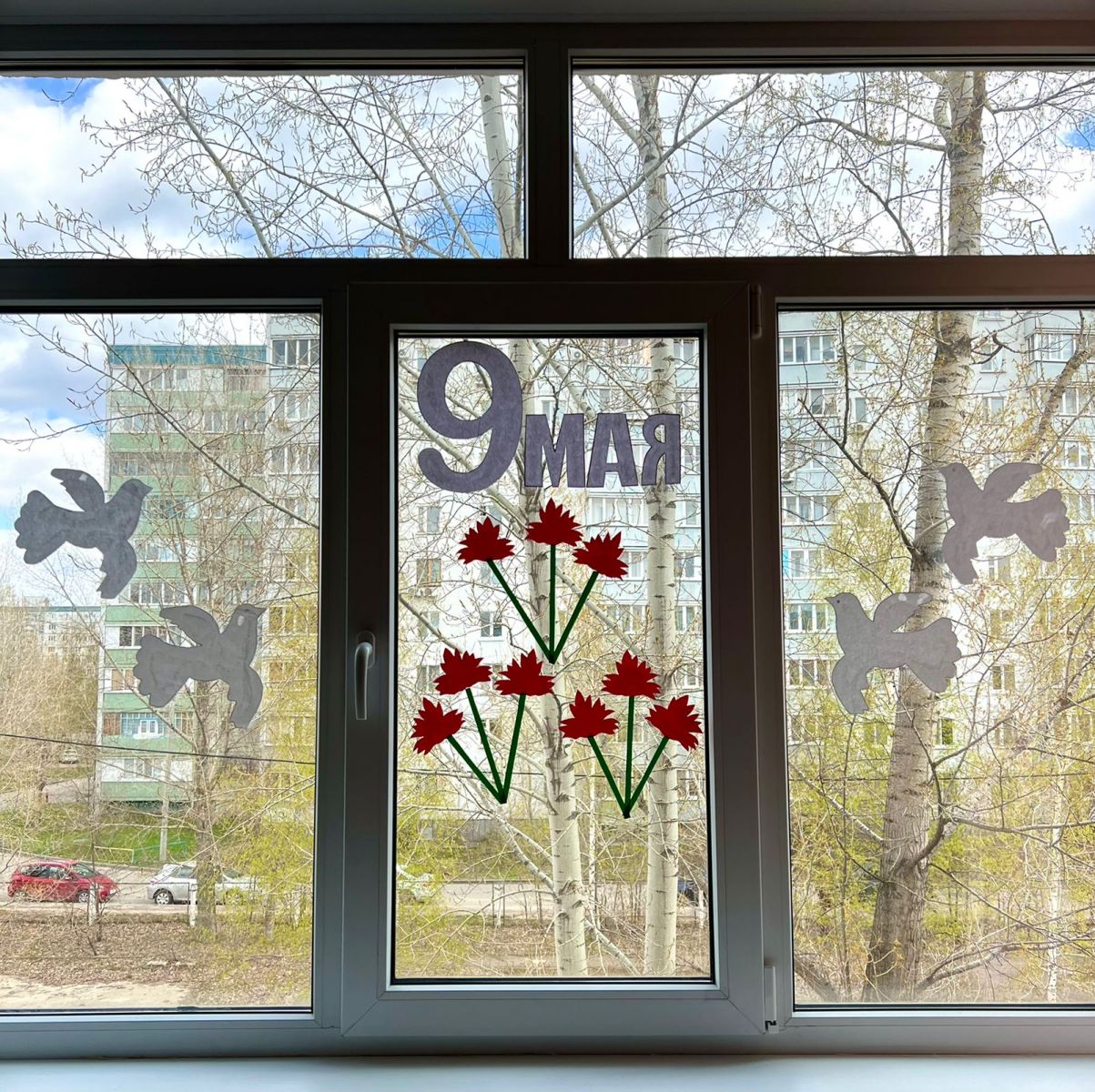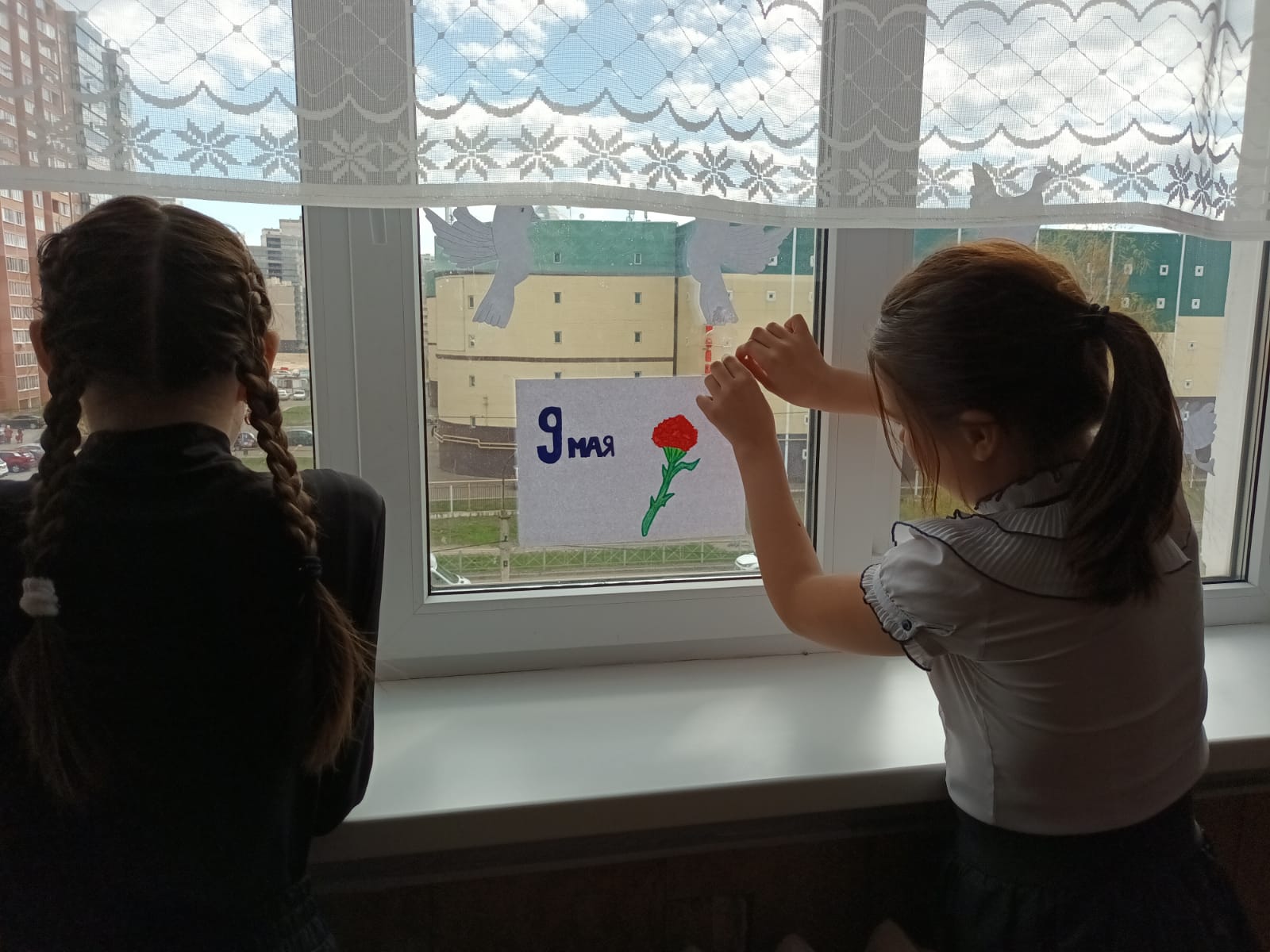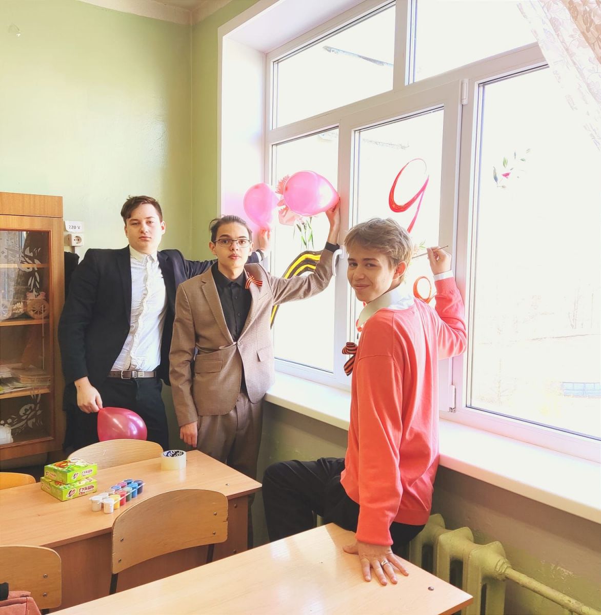 Учащиеся 9"Б" класса принимают участие в патриотической акции Окна Победы