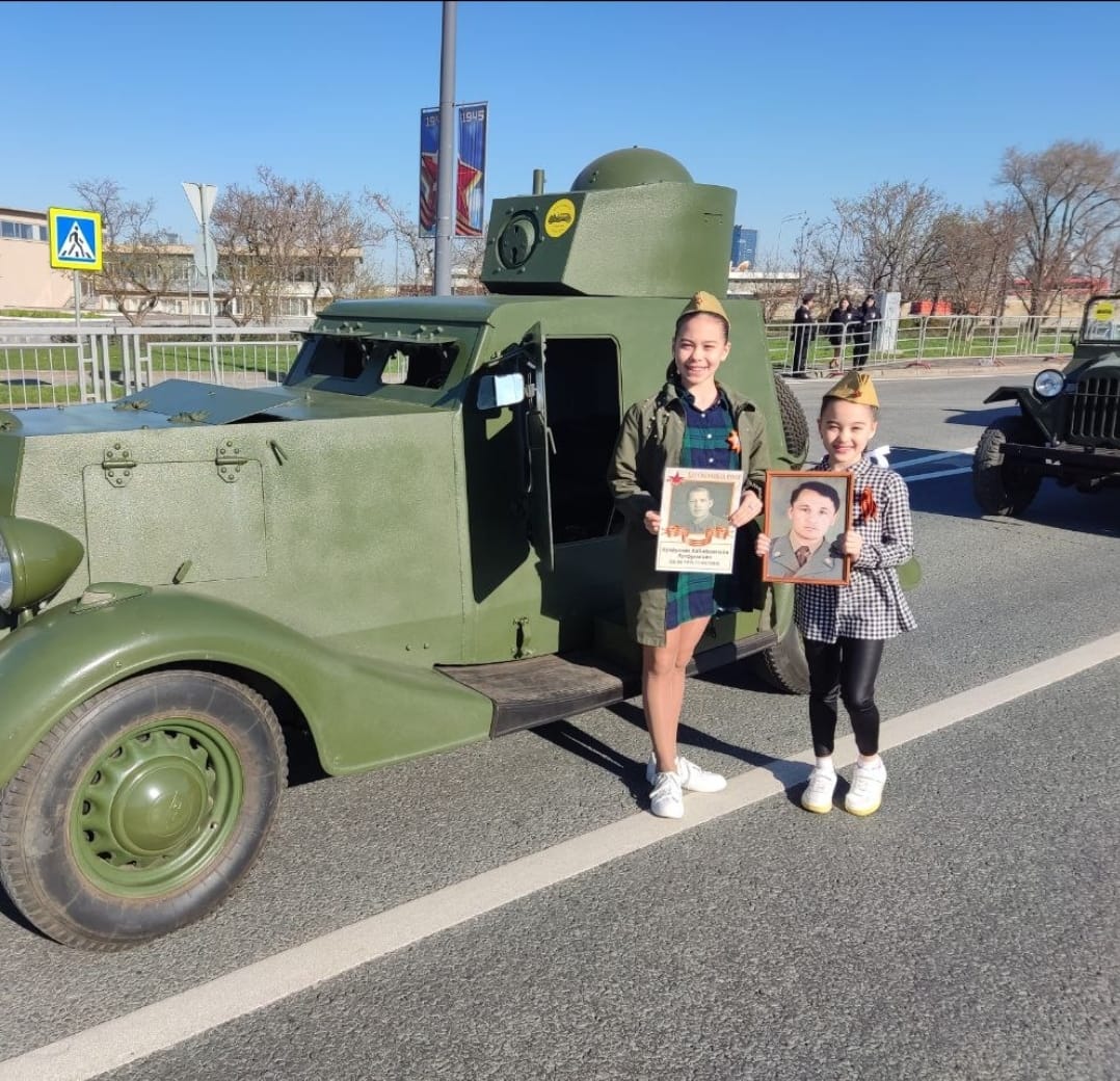Ученицы 2"А" и 5"Б" класса, Нутфуллины Камиля и Алия принимают участие в Бессмертном полку-онлайн и гордятся своими прадедами