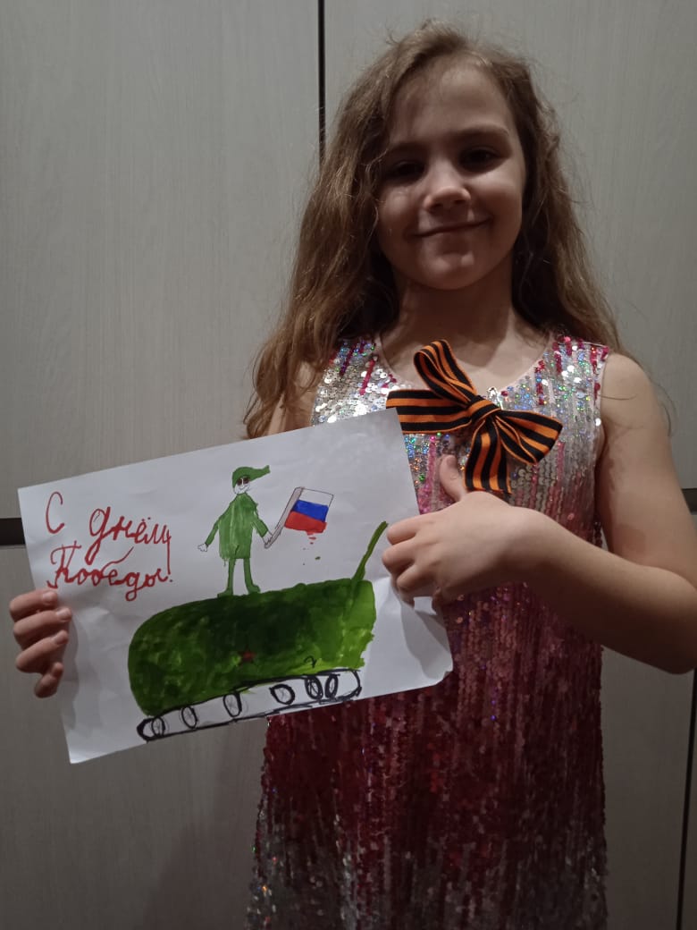 Карпова Лиза, ученица 1"В" класса принимает участие в патриотической акции Рисуем Победу