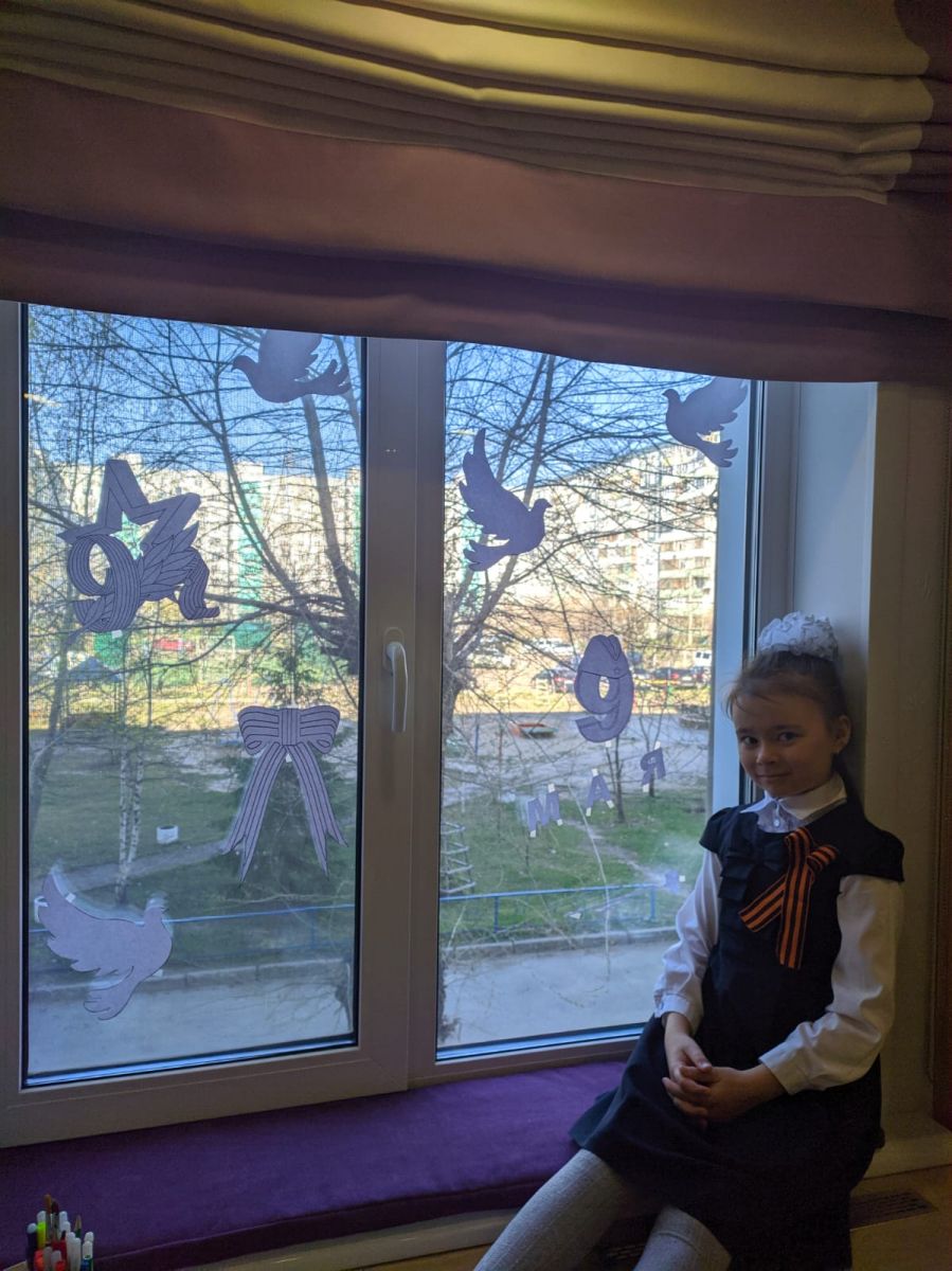 Мокина Дарья, ученица 1"А" класса принимает участие в, патриотической акции Окна Победы