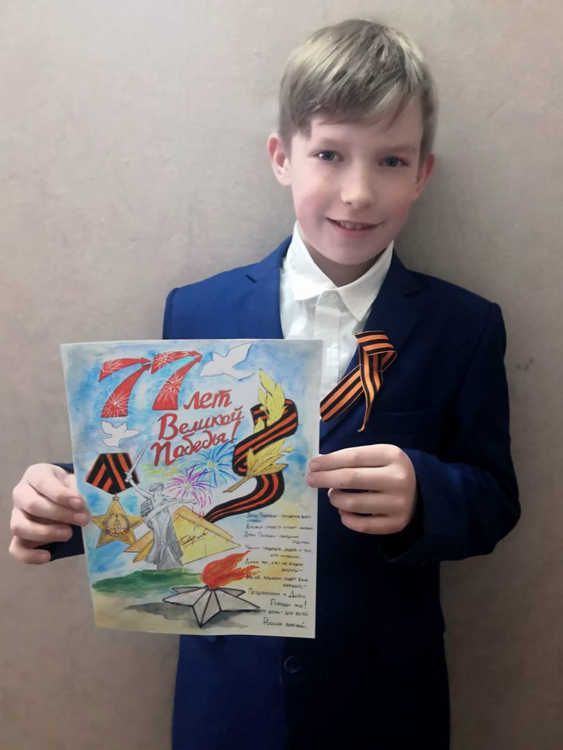 Егоров-Хрусталев Максим, ученик 2"Б" класса принимает участие в патриотической акции Рисуем Победу