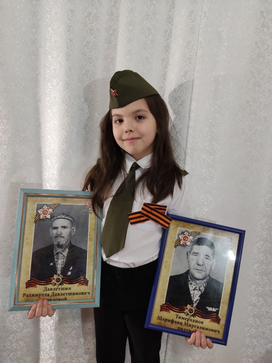Гирфанова Рамина, ученица 2"В" класса принимает участие в Бессмертном полку-онлайн и гордится своими прадедами, Тимерхановым Шарифзяном Миргалимовичем - рядовой и
