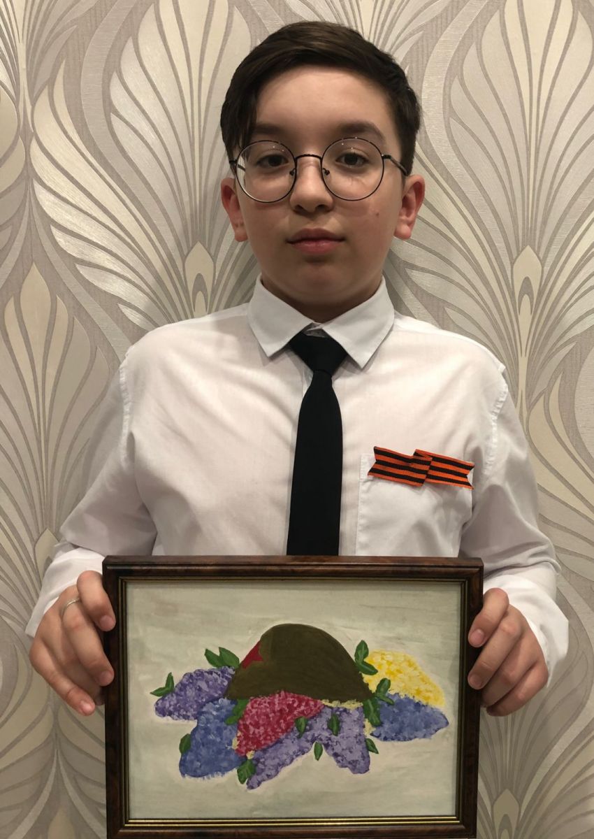 Ученик 5"Б" класса, Вагаев Самир принимает участие в акциях: Рисуем Победу и Георгиевскую ленту.