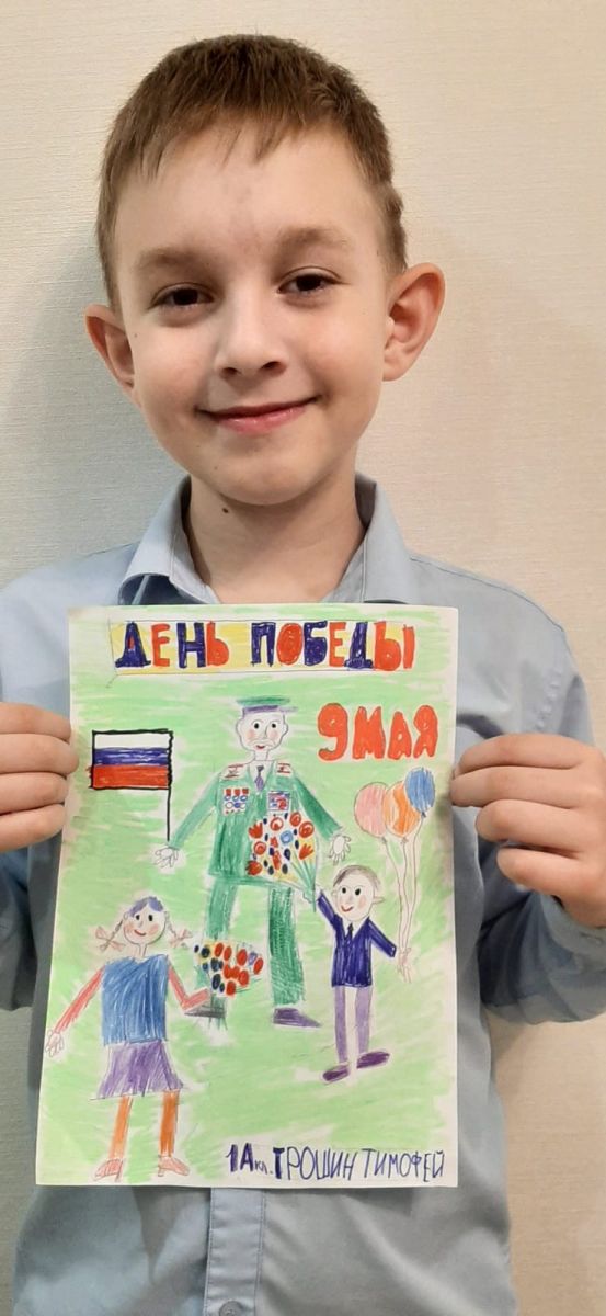 Трошин Тимофей, ученик 1"А" класса принимает участие в патриотической акции :Рисуем Победу.