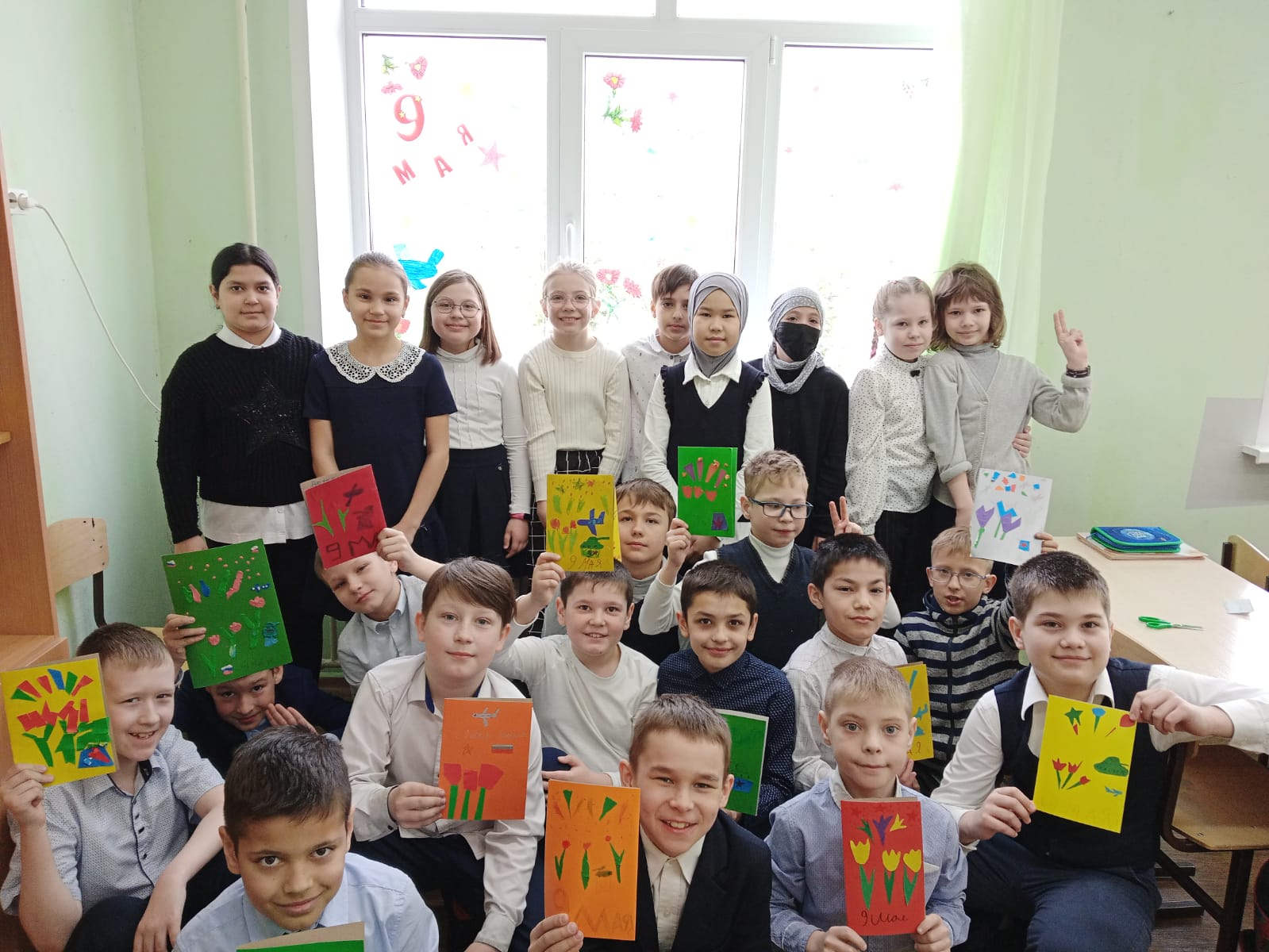 Учащиеся 5" Б" класса принимают участие в патриотической акции Окна Победы
