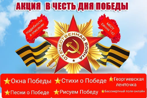 Уважаемые учащиеся и их родители! Приглашаем Вас принять участие в патриотических акциях, посвященных????️ ДНЮ ПОБЕДЫ????️.Акция проходит с 3 мая до 9 мая ВКЛЮЧИТЕЛЬНО!!!