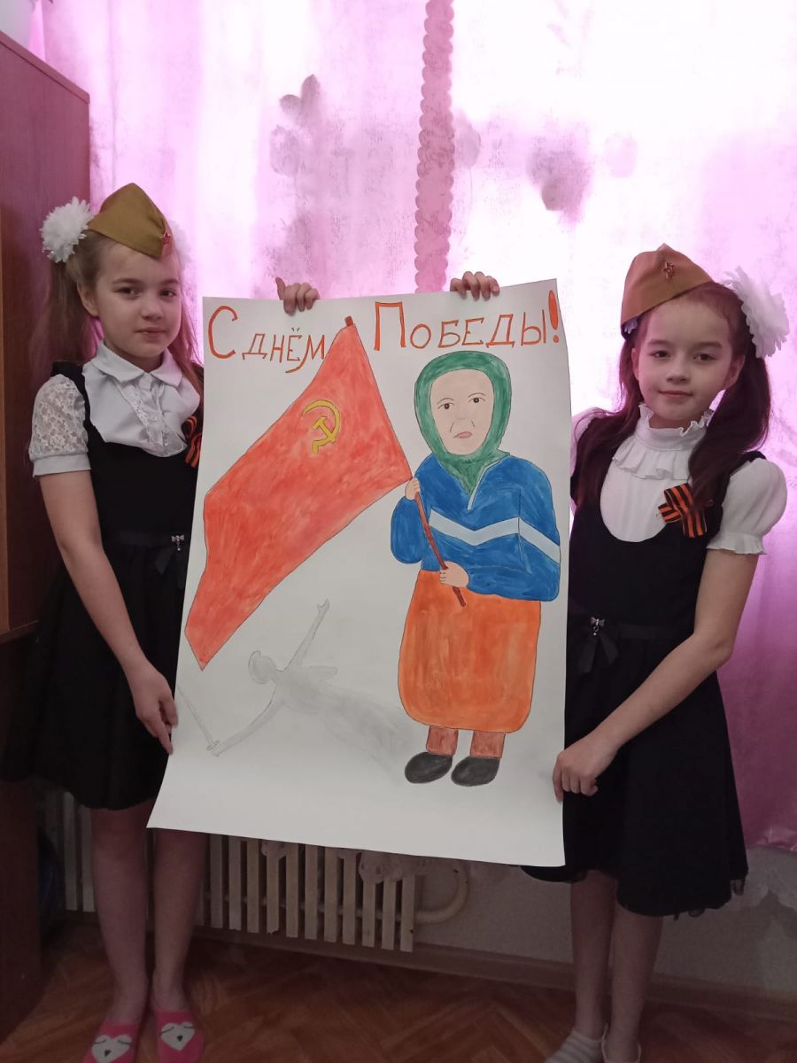 Ученицы 4"В" и 3"А" класса, Игнатьевы Дарья и Настя принимают участие в акциях:Рисуем Победу и Георгиевскую ленту.