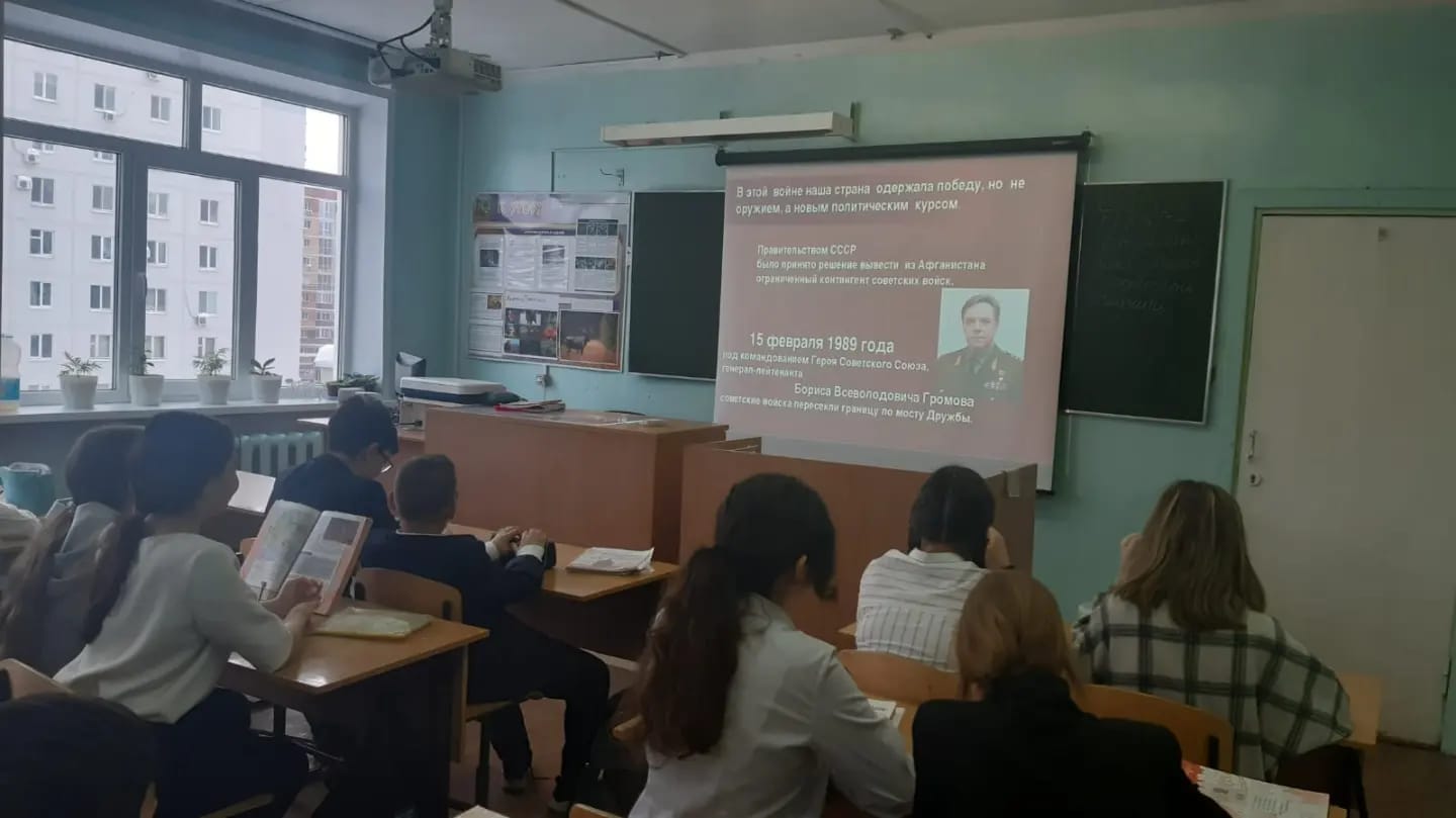 15 февраля 2022 г. в школе среди учащихся был проведён урок мужества, посвященный Дню вывода Советских войск из Афганистана.