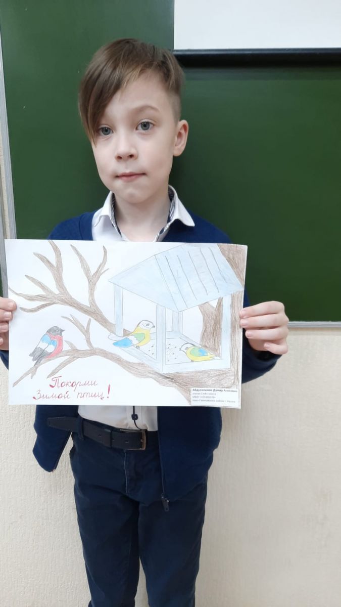 Абдулалимов Дамир,ученик 1 "А" класса принимает участие в экоконкурсе:"Накормим птиц зимой!" в номинации "рисунок".