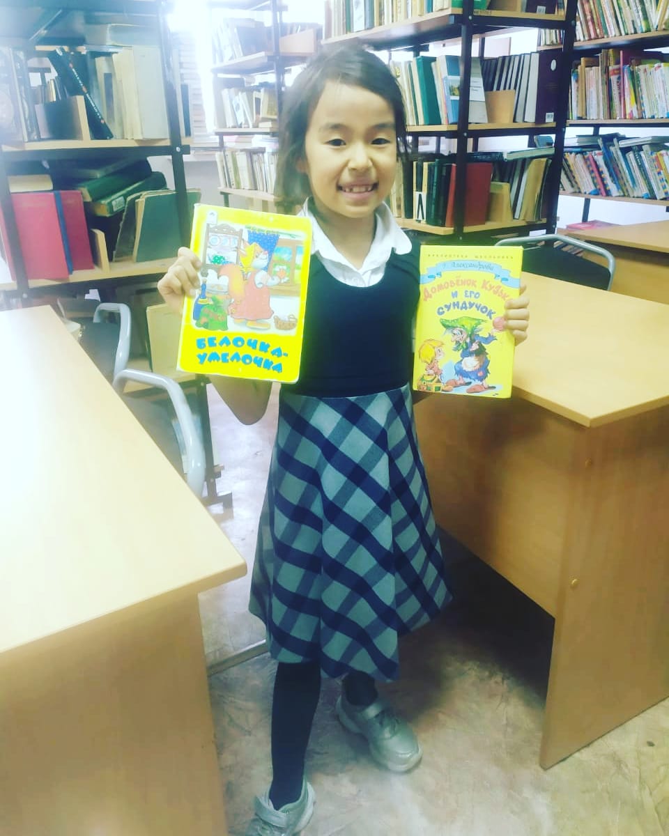 Юнусова Сабина ученица 2 "В" класса,принимает участие в акции:"Подари книге вторую жизнь", которая проводится школьной библиотекой.