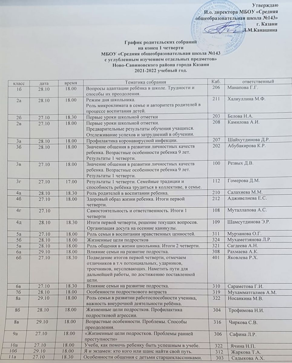 График родительских собраний