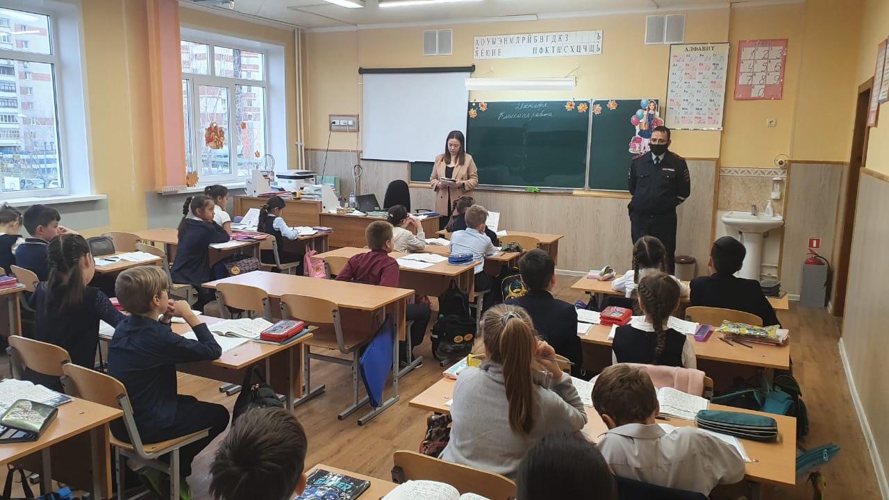 Перед началом каникул инспектор по пропаганде БДД провел информационно-профилактическую беседу с учащимися 1 и 4 классов, где напомнил детям основные правила поведения на дороге, объяснил, как безопасно переходить проезжую часть по пешеходному переходу.