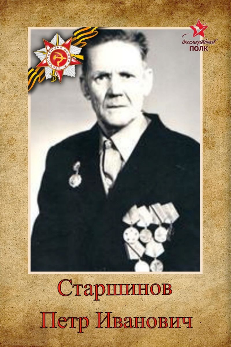 Игнатьева Дарья, ученица 3"В" класса и Игнатьева Анастасия, ученица 2"А" класса гордятся своим прадедушкой, Пётром Ивановичем Старшиновым и принимают участие в акции "10 дней до Победы" "Бессмертный полк ".