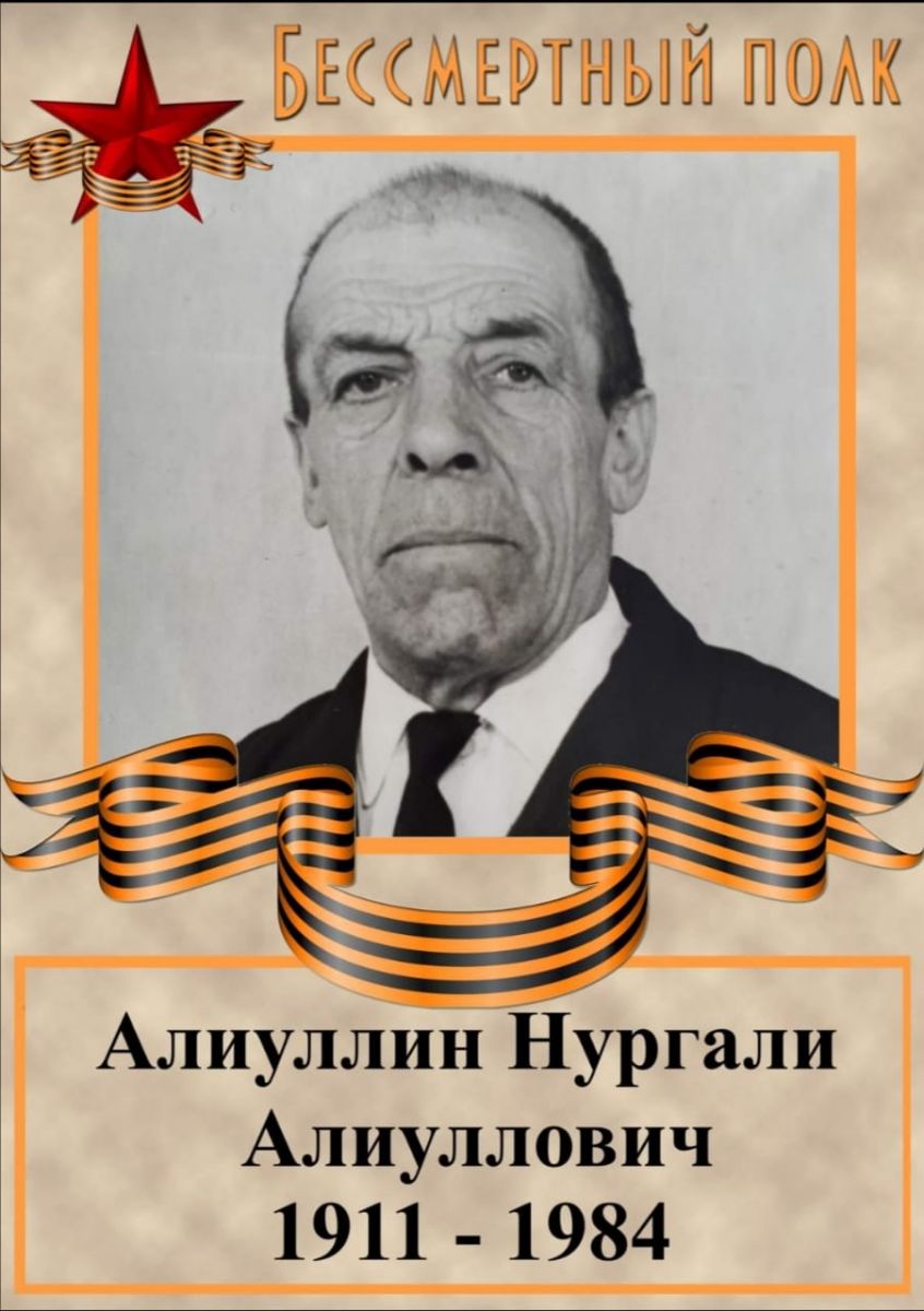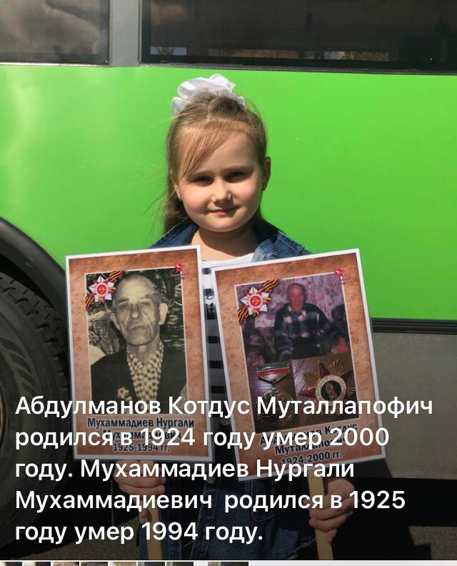 Ученик 1 "В" класса,Лауман Леон и ученица 4"А" класса, Лауман Паулина гордятся своим прадедушкой, Алиуллиным Нургали Алиулловичем и принимают участие в акции "10 дней до Победы " "Бессмертный полк ".