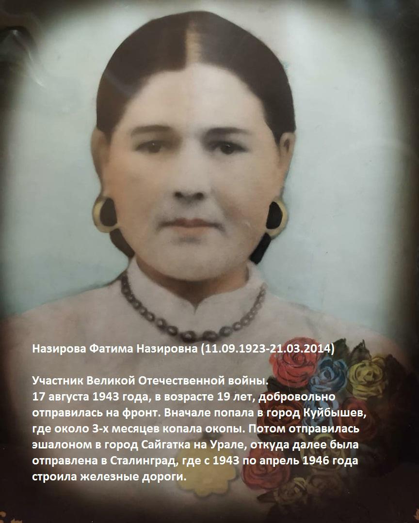 Ученик 8 "А" класса, Валиев Самат гордится своей прабабушкой,Назировой Фатимой Назировной и принимает участие в акции "10 дней до Победы" "Бессмертный полк ".