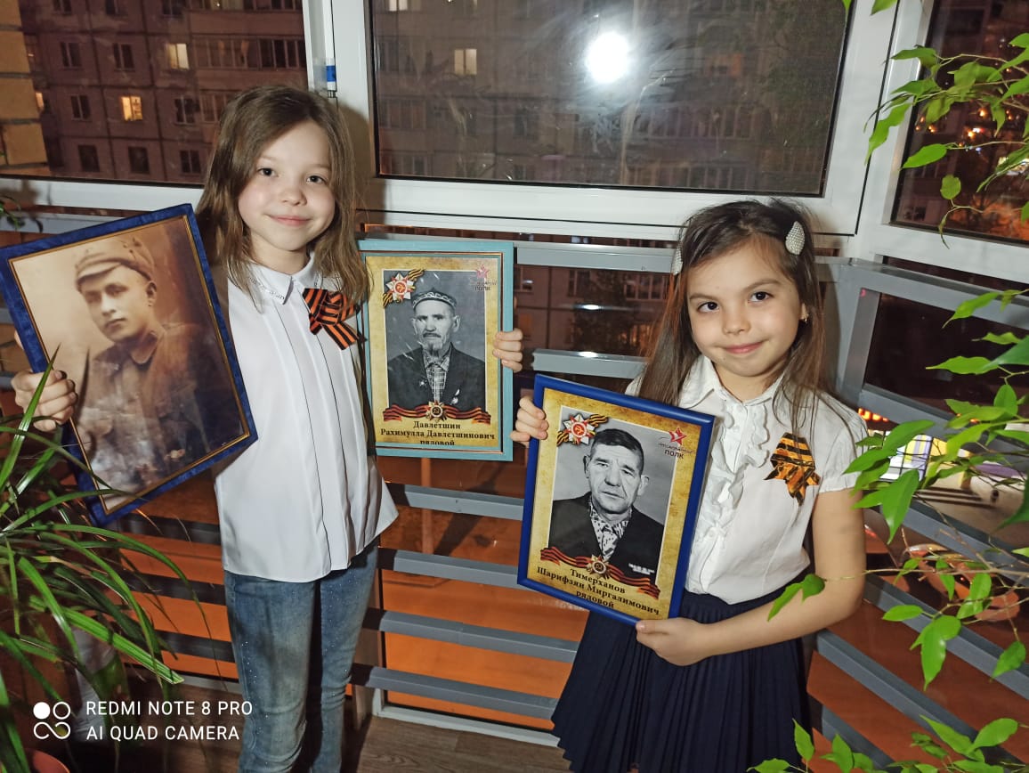 Ученицы 5 "В" класса и 1 "В" класса Гирфановы Динара и Рамина гордятся своими прадедушками и принимают участие в акции "10 дней до Победы" "Бессмертный полк ".