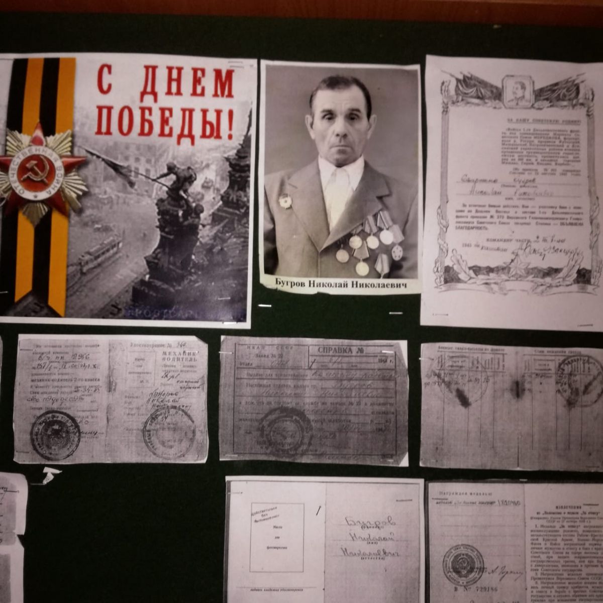 Царёв Павел,ученик 9"Б" класса и ученица 3 "А" класса,Бугрова Варвара гордятся своим прадедом,Бугровым Николаем Николаевичем и принимают участие в акции "10 дней до Победы" "Бессмертный полк ".