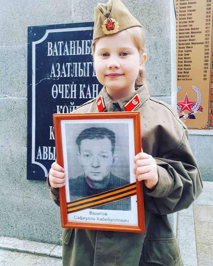 Мареева Софья,ученица 1"А" класса гордится своим прадедом,Вахитовым Сафиуллой Хабибулловичем и принимает участие в акции "10 дней до Победы" "Бессмертный полк ".
