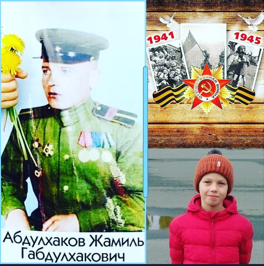 Абдулхаков Карим,ученик 5"А" класса гордится своим прадедушкой Абдулхаковым Жамилем Габдулхаковичем и принимает участие в акции "10 дней до Победы" "Бессмертный полк ".