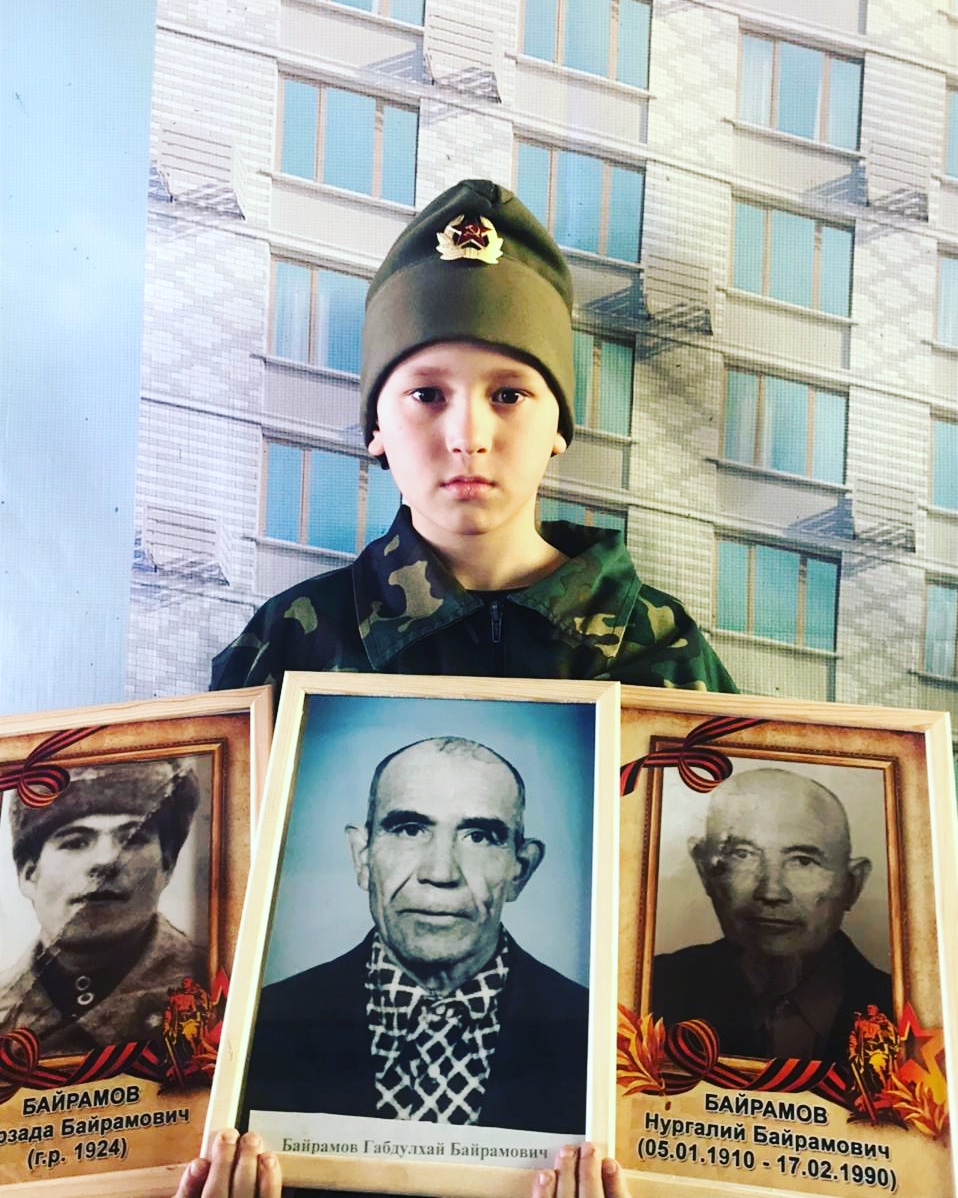Ученик 3"Г" класса ,Низамутдинов Ильяс гордится своими прапрадедами и принимает участие в акции "10 дней до Победы" "Бессмертный полк ".