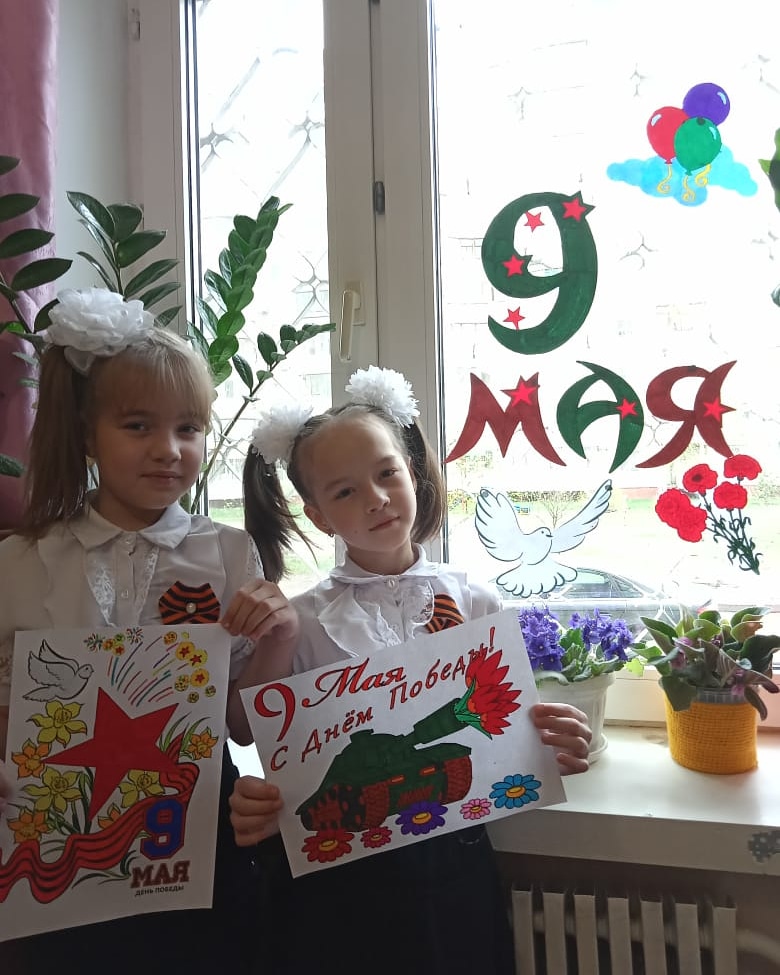 Ученицы 2 "А" и 3 "В" класса Игнатьевы Даша и Настя принимают участие в акции "10 дней до Победы" в номинации "Окна Победы ", "Рисуем Победу" и "Георгиевская ленточка ".
