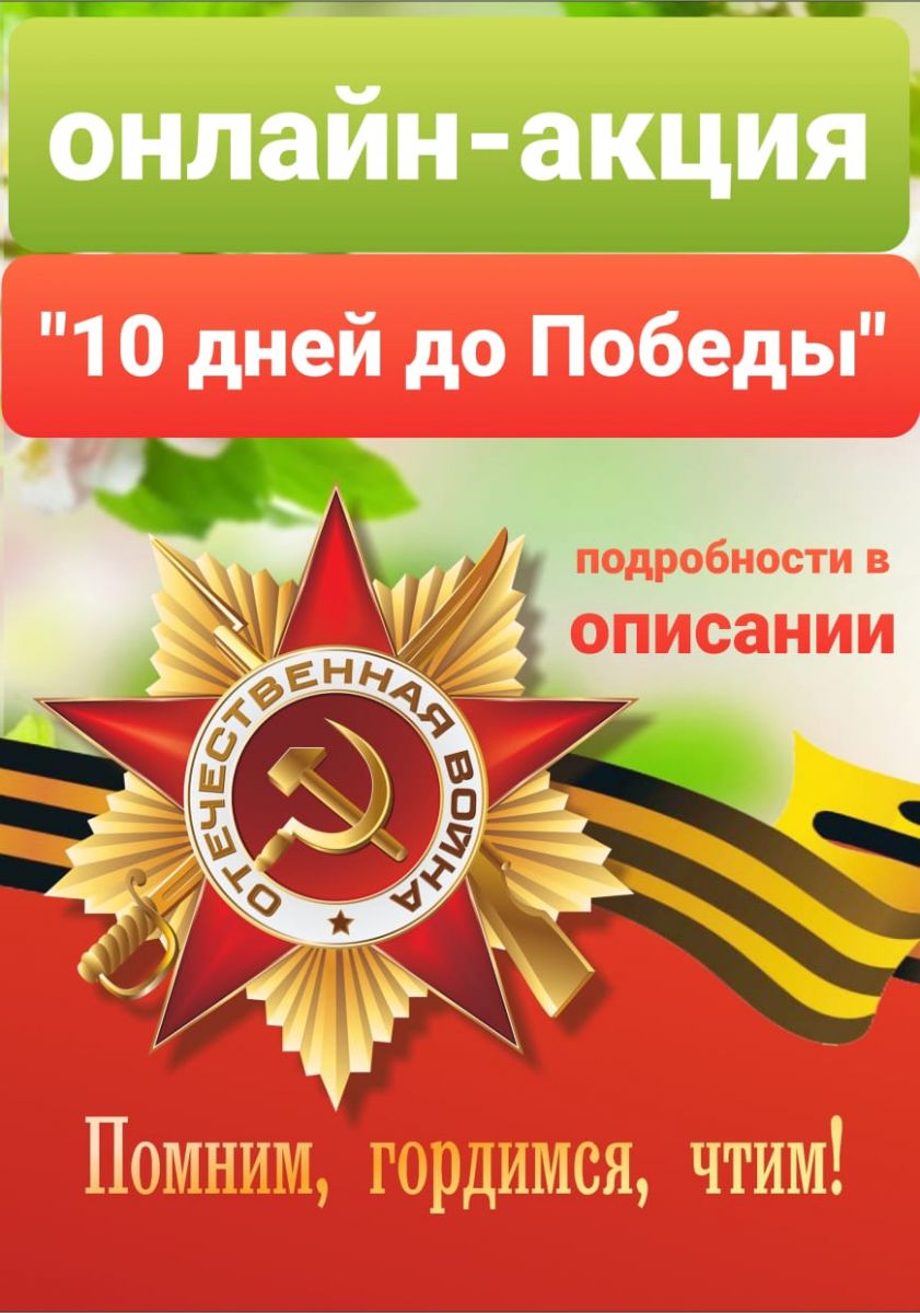 В преддверии празднования 76-й годовщины Победы в Великой Отечественной войне,мы проводим акцию "10 дней до Победы" и для участия в акции нужно: