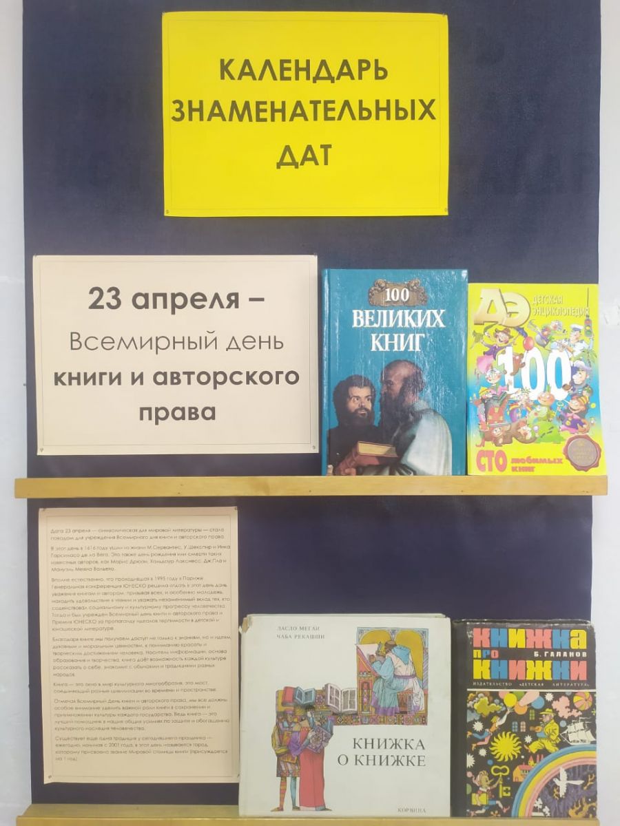 Дата 23 апреля — символическая для мировой литературы — стала поводом для учреждения Всемирного дня книги и авторского права.