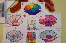 И сегодня они получили по морскому обитателя,которого они должны были узнать,раскрасить и поделиться знаниями о морских жителях.