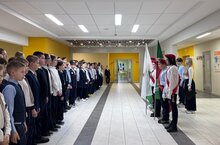 Сегодня, 13 января, в нашей школе прошла торжественная линейка, которая началась с выноса Государственного флага РФ,РТ,города Казани и исполнения гимнов Российской Федерации и Республики Татарстан.