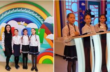 Девочки-ученица 4"А" класса Садыкова Азалия, ученица 5"В" класса Галимуллина Самира,ученица 6"Б" класса Низамиева Лейла, одержали победу в номинации "Юные таланты Отчизны".