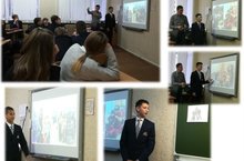 «Комсомол –не просто возраст, комсомол – моя судьба» - с презентацией истории комсомольской жизни бывшего секретаря комитета ВЛКСМ производственного объединения «ТАСМА», удостоенного медали «За трудовое отличие», ныне преподавателя химии, руководителя 9А класса и отряда СМС-дети нашей школы Романовой Ирины Анатольевны выступила ученица 9А Завада Анастасия.