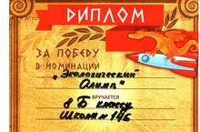 И сегодня коллектив школы 146 поздравляет 8Б класс и Юлдуз Димухаметовну с победой в одной из специальных номинаций конкурса - «Экологический Олимп»!