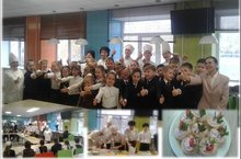 Классный завтрак 4Д класса (руководитель Хлебникова Нина Николаевна) 13 октября 2017 года прошёл в формате мастер-класса от студентов Международного колледжа сервиса – участников чемпионата молодых профессионалов WorldSkills. Пока студенты колледжа, среди которых были выпускники нашей школы, занимались приготовлением творожной начинки для тарталеток и взбивали крем для фруктового десерта, руководитель группы Трудова Лариса Алексеевна в интерактивном режиме вела с учениками беседу о поварской профессии. Четвероклассники смогли и сами поучаствовать в «профессиональной пробе», когда студенты колледжа начали оформлять приготовленные блюда. И, конечно же, всеобщим участием было наполнено действо дегустации приготовленных блюд! Аппетитно, вкусно, полезно – оценка кулинарного мастерства молодых профессионалов! ОТЛИЧНАЯ работа – отметка работы наставников коллежда!