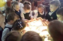 13 сентября 2016 года ученики начальной школы стали свидетелями увлекательного шоу, соединившего музыку, плавность линий и песок. Песочная анимация «Правила дорожного движения» была представлена ученикам1-2 классов, а ребятам 3-4-х классов была показана композиция «Мамины профессии», затрагивающая тему важности профессионализма наших мам в жизни общества. После шоу, ученики имели возможность попробовать себя в роли исполнителей песочного рисования.
