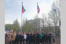 Утро 4 мая началось в лицее "Ресурс" с возрождения традиции поднятия государственных флагов Российской Федерации и Республики Татарстан. На церемонии присутствовали лидеры ученического самоуправления: право поднять флаги было предоставлено председателю УС одиннадцатикласснику Сидорову Артёму и кандидатам на этот пост Мандич Милане и Васильевой Софье.