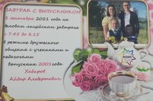 Лицей-юбиляр в этом учебном году встречает на завтраках по четвергам своих дорогих выпускников. Сегодня он был и деловым, и семейным, он помог вернуться в детство выпускнику 2001 года, серебряному медалисту, отличному семьянину и отцу двух учеников "Ресурса" Хабирову Айдару Альбертовичу.