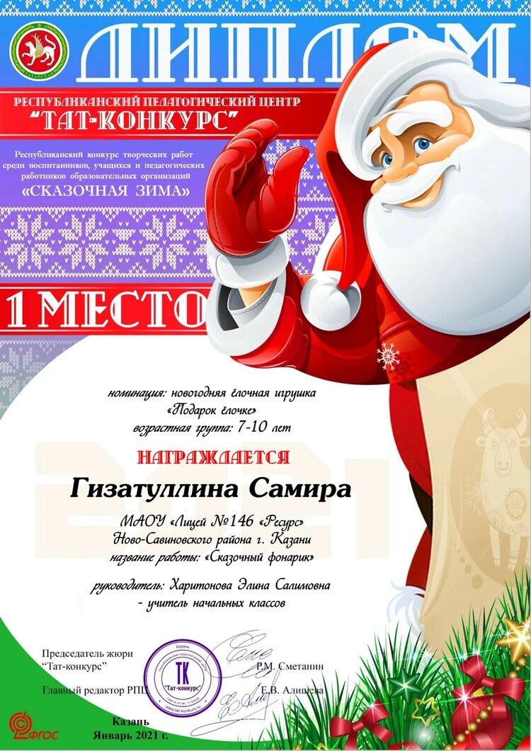 25 января были подведены итоги Республиканского конкурса "ТАТ-КОНКУРСА " "Сказочная зима". Талантливые ребята 2д класса Гизатуллина Самира и Радецкий Марк стали победителями. Поздравляем и желаем дальнейших побед! -