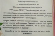 Первыми в нашем лицее с благотворительной инициативой выступил коллектив родителей и детей 1А класса (руководитель Глызина Оксана Александровна), которые быстро нашли применение старому постельному белью класса полного дня и отвезли его в приют для бездомных кошек и собак. Сегодня волонтёры приюта вручили 1А классу благодарность за вклад в дело защиты бездомных животных, подчеркнув, что внимание и помощь ребят очень важны собакам и кошкам, которых приют лечит и пристраивает в добрые руки.