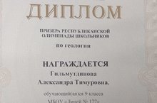 Поздравляем Гильмутдинову Александру с призовым местом в региональном этапе олимпиады по геологии!