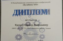 На Х Республиканской олимпиаде юных изобретателей "Кулибины ХII" наш ученик, Киселев Кирилл был награжден дипломом за 3 место. Мы рады тому, что в стенах нашего лицея воспитываются очень одаренные и талантливые дети, доказательством тому служат нескончаемые победы на конкурсах и конференциях разного уровня.