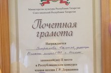 Поздравляем ученицу 10 класса, занявшую 2 место в Республиканском конкурсе чтецов поэзии Г.Р. Державина. Пожелаем ей творческих успехов!