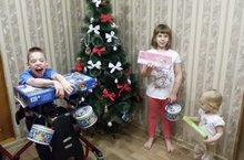 "Здравствуйте!Пишу Вам со словами благодарности от всей нашей большой семьи .Сегодня нам подарили подарки всем детишкам и радости детей не было границ.Для нас очень важно было внимание ,которые подарили нам добрые сердца .Мы знаем ,что подарок для нашего Саши ,особенного ребенка ,был собран на средства проданных сувениров ,которые сделали своими руками дети.Для нас это не просто подарок ,а нечто очень доброе и особенное.Мы от всего сердца благодарим всех тех кто не остался равнодушными к нашей семье и вложил частичку тепла в подарки для детей!Мы всегда будем помнить людей ,которых не остались равнодушными и помогли нам.Мы Вам очень благодарны ,за Ваше теплое отношение .Дети были несказанно рады им понравились игрушки и мы присылаем Вам фото с нашими детишками и игрушками.Спасибо Вам за улыбку радости.Поздравляем Вас с наступающими праздниками и хотим пожелать Вам ,чтоб все что Вы сделали доброго обязательно вернулось Вам сторицей.Ведь когда творишь добрые дела ,они обязательно возвращаются добром.Спасибо Вам огромное!С наступающим Вас Новым годом и Рождеством Христовым!Низкий поклон от всего материнского сердца!С уважением семья Никишиных!".