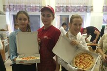 Гости раскрыли нашим ученицам все секреты приготовления вкусной пиццы: натуральные ингредиенты - сыр моцарелла, отборные овощи, фирменный томатный соус, производимый в Калифорнии, свежее , не замороженное тесто, после чего под четким руководством шеф-поваров ресторана "Папа Джонс" приготовили любимое всеми блюдо - пиццу ! Девочки в свою очередь накормили мальчишек и учителей нашей школы, и даже приготовили отдельную пиццу для администрации.Благодарим руководство ресторана "Папа Джонс" за "праздник пиццы", который они нам сегодня устроили!